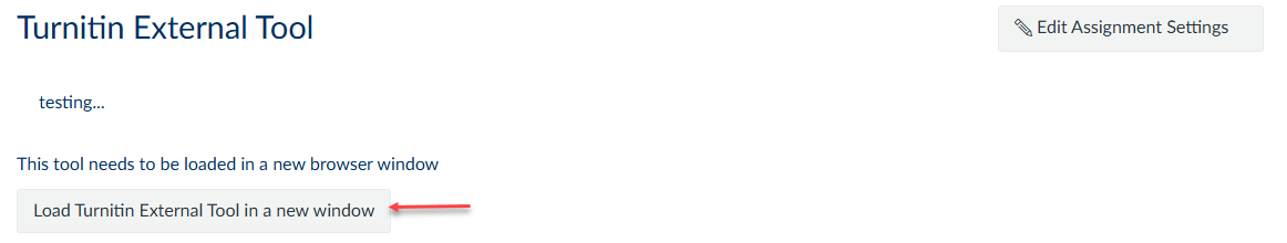 2. Use the Load Turnitin External Tool in a new window button to open the Turnitin Dashboard for the assignment