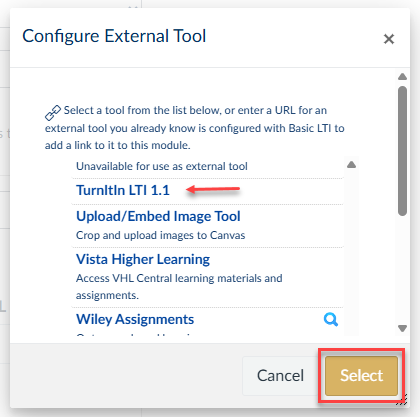 1. Scroll down until you locate TurnItIn LTI 1.1 and select it